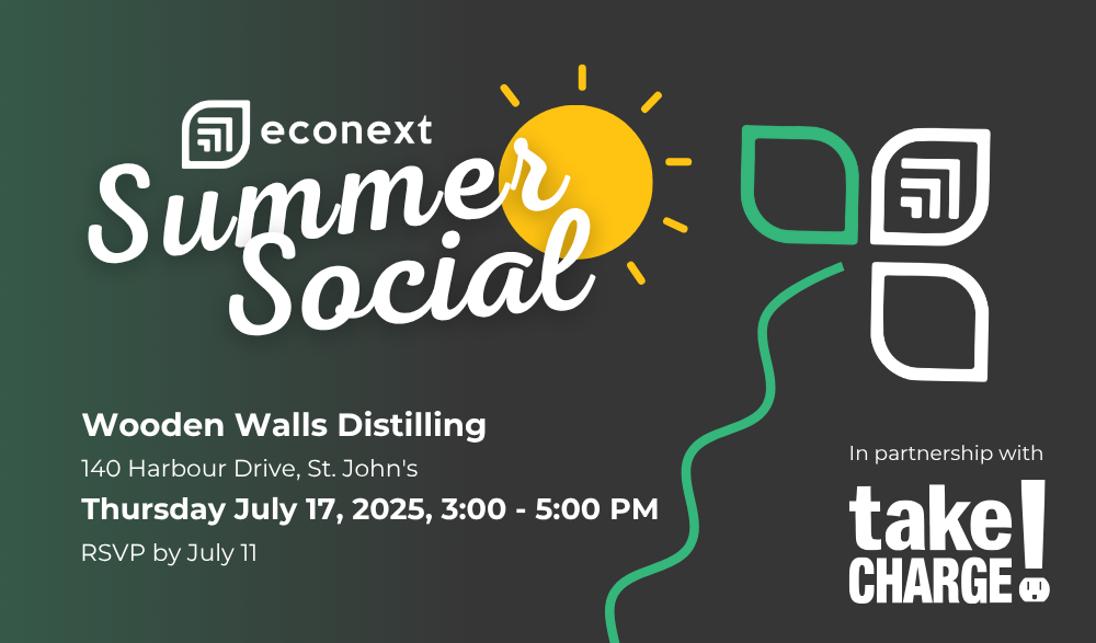 Join us for the econext Summer Social on Thursday, July 17th, 2025 from 3:00pm – 5:00pm, in partnership with takeCHARGE! This in-person event will take place at Wooden Walls Distilling, 140 Harbour Drive, St. John’s.